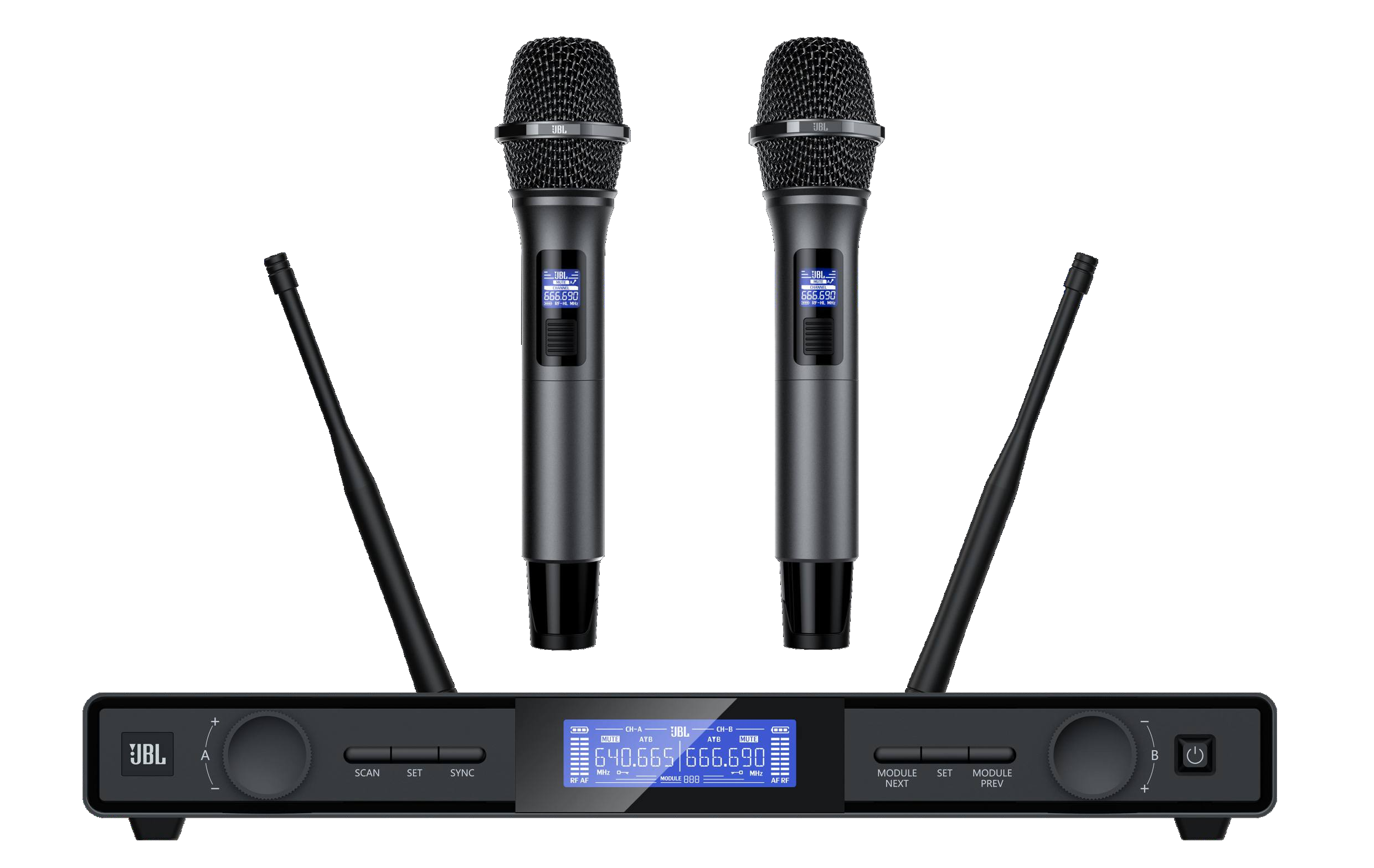 JBL KMC1000无线麦克风系统专为娱乐扩声场景设计,适用于家庭聚会、小型演出等,以卓越音质与智能功能为核心,带来稳定便捷的声音传递体验。其核心优势是音质清晰通透、抗干扰能力强,能精准还原语音细节;还配备 A/B 通道组切换、2400MH2-2483.5MHz频段自动扫频、SHAKETOSYNC 摇一摇及红外双模式对频,以及智能静音、休眠、唤醒等节能设计,兼顾专业与易用性。每套含1台KMC1000接收机与2只KMC1000-HT手持发射器,接收机紧凑易装,手持器符合人体工学、握感舒适,是娱乐扩声的理想之选。