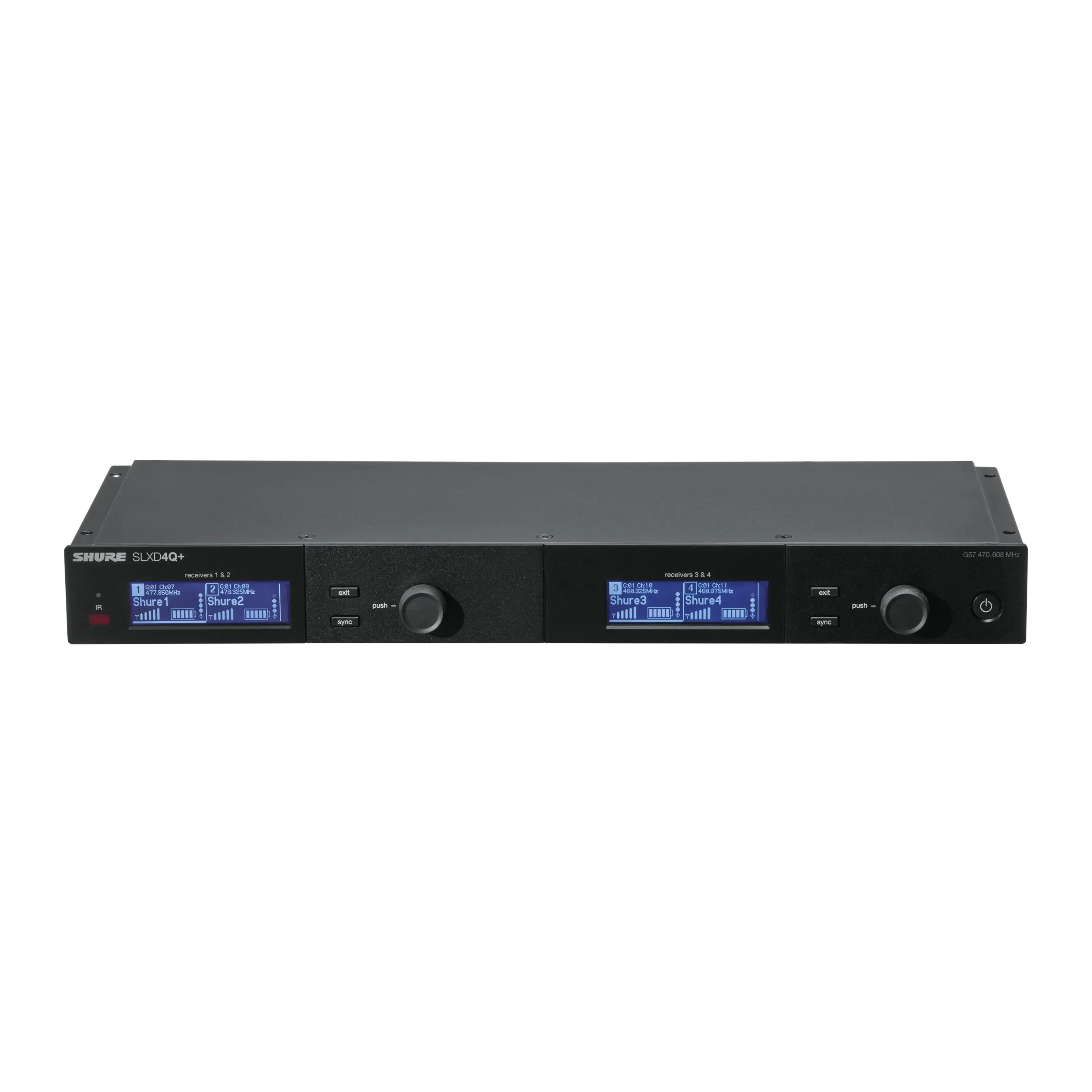 SLXD4Q+ 四通道接收机是将 SLX-D 数字无线性能简化到节省空间的最佳选择。具有扩展功能,从讲座大厅到现场娱乐表演,确保